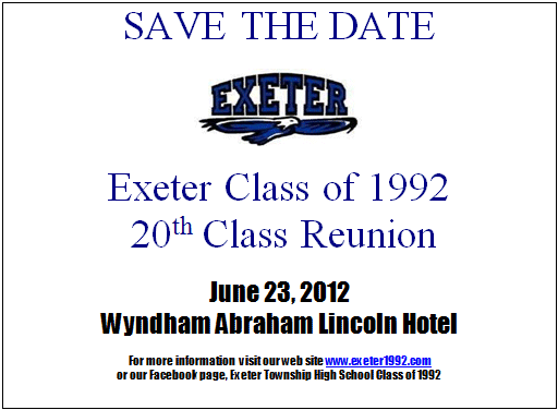 Welcome to the brand new web site dedicated to the Exeter Township Senior High School Class of 1992.